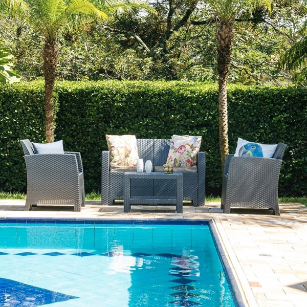 Junto con un sofá, sillón y mesa de café 4 lugares Grafito Technorattan Valentina Aquaplas