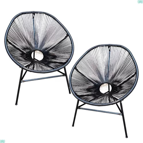Kit 2 Sillas Balcón Fibra Sintética Negra Hogar y Jardín