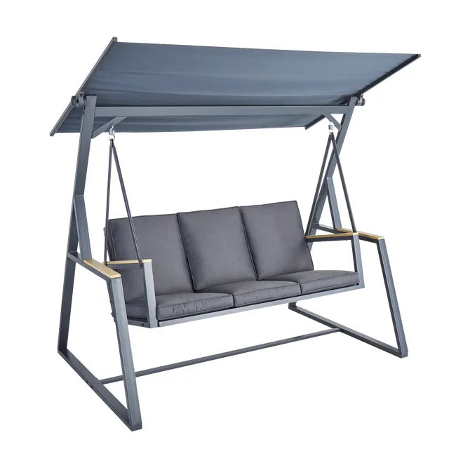 Swing de jardín Orisite Naterial es perfecto para cada jardín y en la terraza, e incluso en balcones grandes. Las dimensiones de los muebles significan que incluso unas pocas personas pueden sentarse cómodamente.También permite una estructura estable, que está hecha de acero pintado en polvo de alta calidad.Por lo tanto, es resistente a la humedad y muchos otros factores. Es similar con un asiento de poliéster.Es un material que también tiene resistencia a los hongos y al moho, y su ventaja adicional es un secado rápido.Vale la pena enfatizar que el modelo también tiene un diseño excelente.El color antracita de moda se ajusta perfectamente a las tendencias de disposición aplicables, pero al mismo tiempo los productos de este color se ven bien en espacios tradicionalmente amueblados.